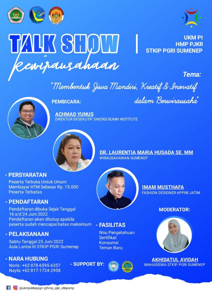 Sementara itu Siti Nur Afni Octavia selaku Ketua Umum UKM PI mengatakan, Talk Show tersebut menghadirkan tiga pemateri yang memang mempunyai talenta di bidang kewirausahaan.