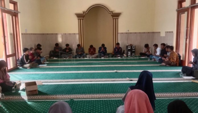 DUDUK MELINGKAR: Pengurus dan anggota UKM Karomah istighosah dan doa bersama, Kamis (23/11/23). (Zubairi/mediaretorika.com).