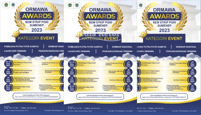 MEDIARETORIKA.com—Badan Eksekutif Mahasiswa (BEM) STKIP PGRI Sumenep akan menggelar Ormawa Awards 2023, dengan mengusung tema, Ormawa Solid, Wujudkan Iklim Kompetitif yang Sehat di Lingkup Kampus.